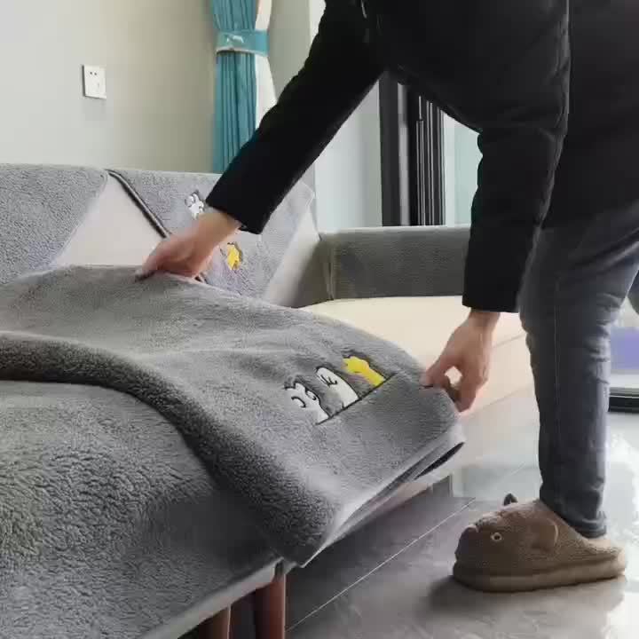 1pc Plush Thick Shearling Sofa Cover with Cute Animal & Bone Embroidery - Pet-Friendly, Non-Slip Couch Protector for All Sofa Sizes from Single to Four-Seater - Soft, Warm Décor for Living Room, Bedroom, Office, Sofa Covers