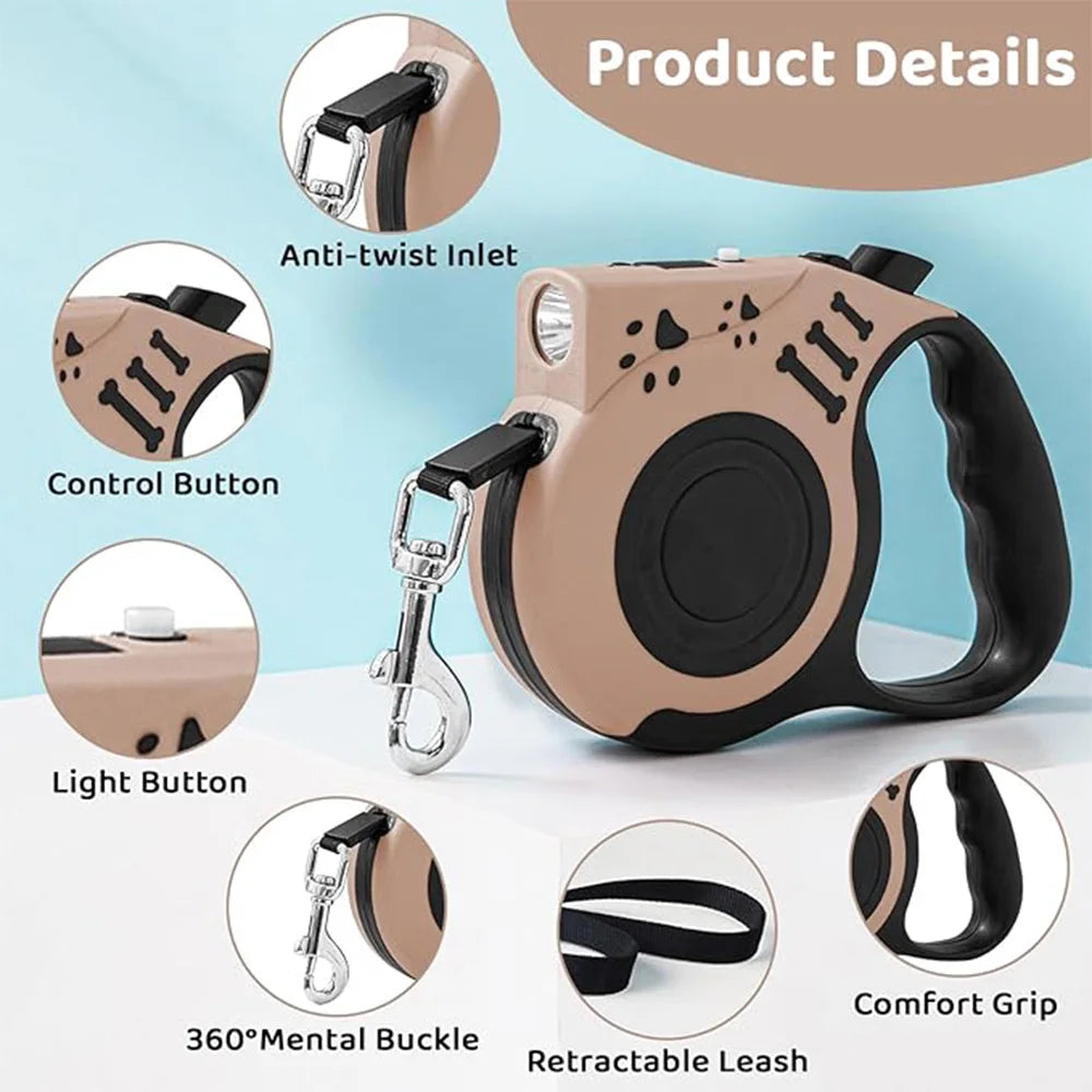 Charging LED lighting traction rope 5-meter automatic retractable dog walking rope