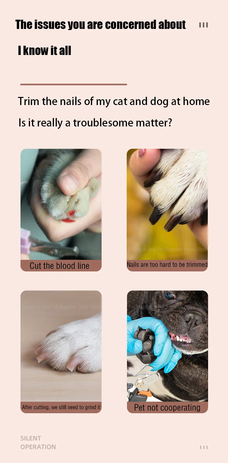 Pet Nail Clipper USB Rechargeable, Pet Nail Trimmers Painless with Polisher, Wheel for Small/Large Pets