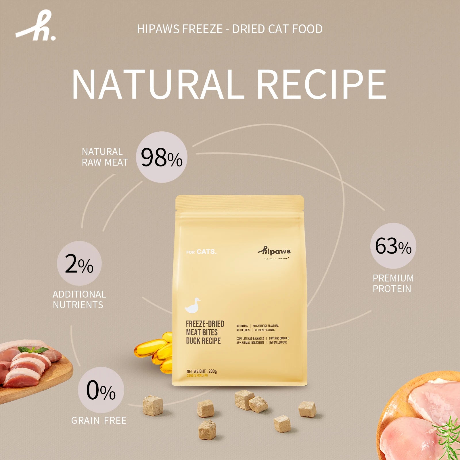 Freeze-Dried Cat Food Treats Toppers 280g, Hypoallergenic No Grain,