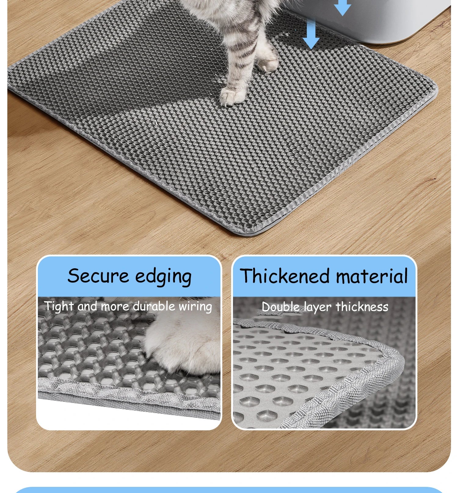Double Layer Non-Slip Washable Pet Litter Box Mat Durable Sand Trapper Easy Clean