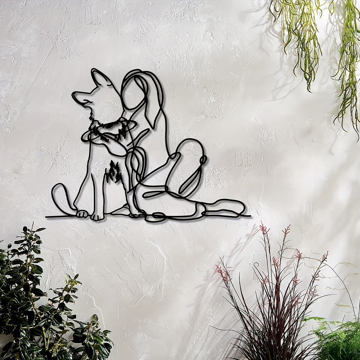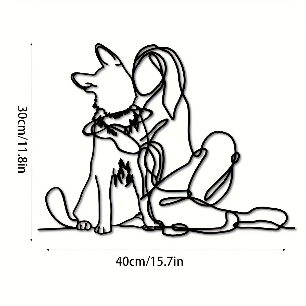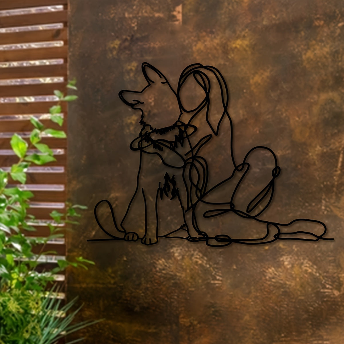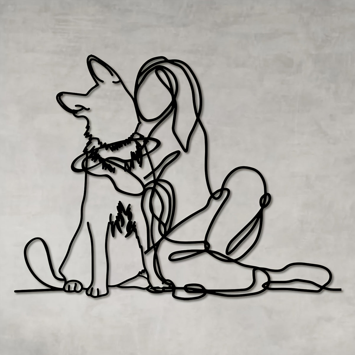 Modern Metal Art Deco 1pc Woman and Dog Line Wall Art - German Shepherd Pet Lovers Hanging Décor - Indoor Outdoor Garden Gift