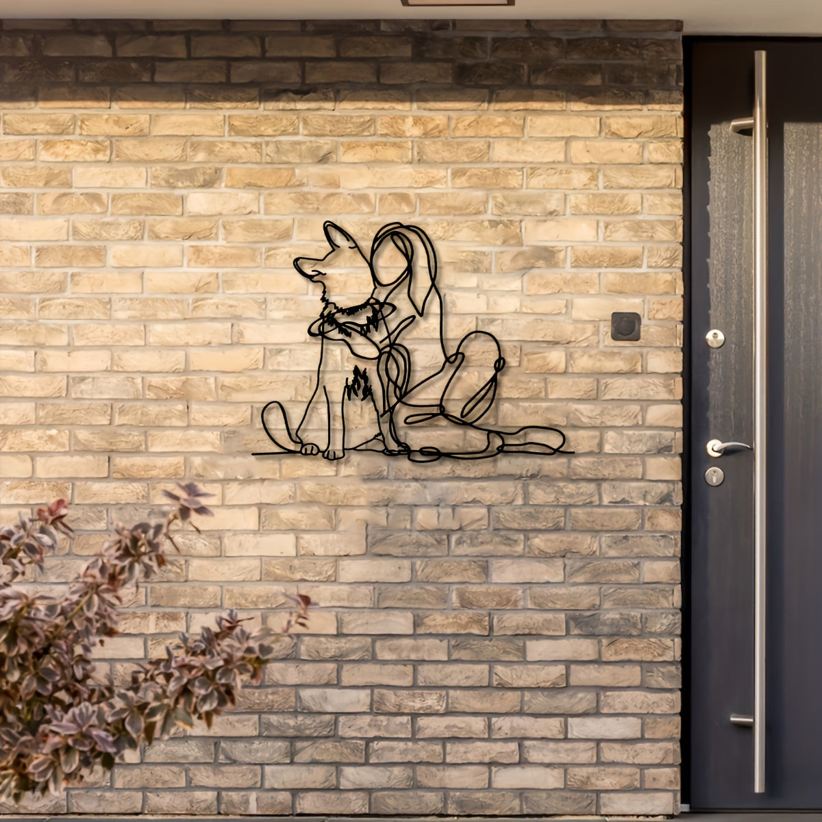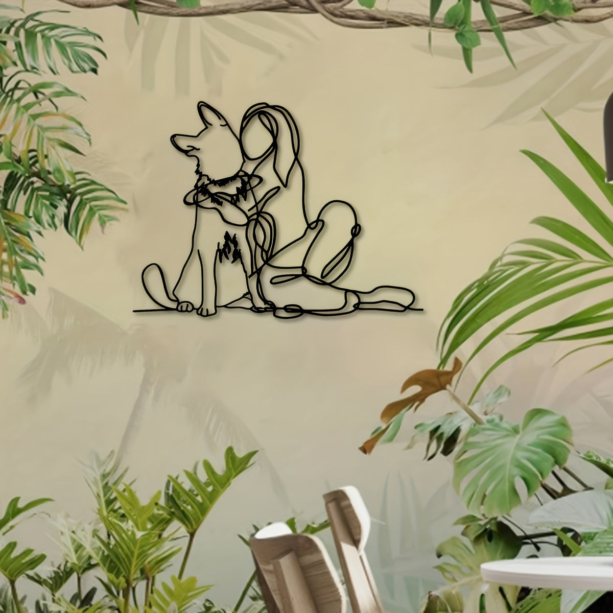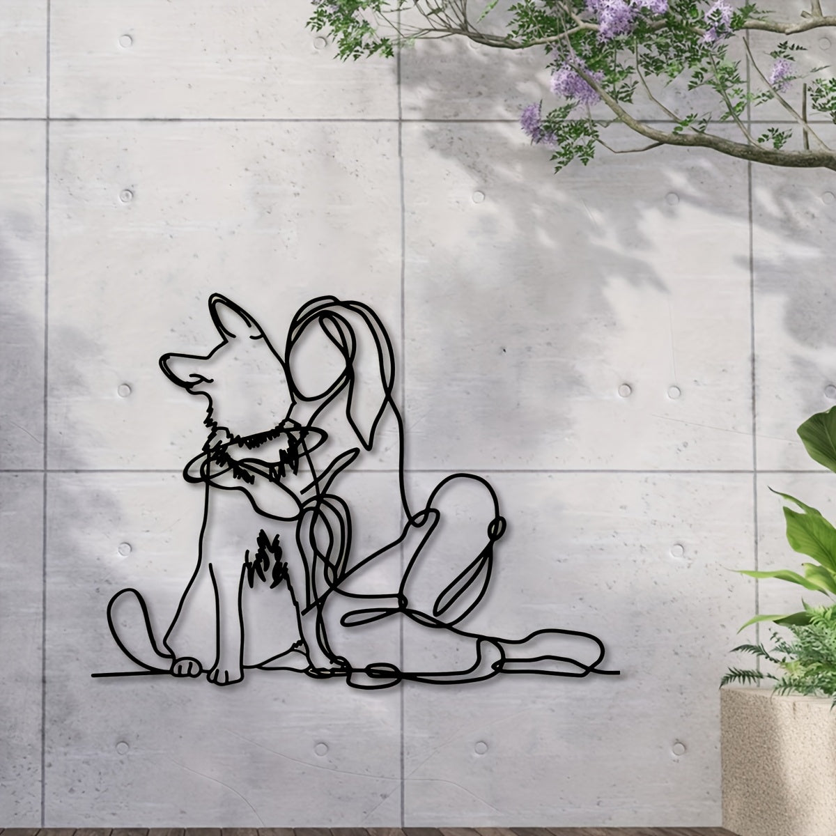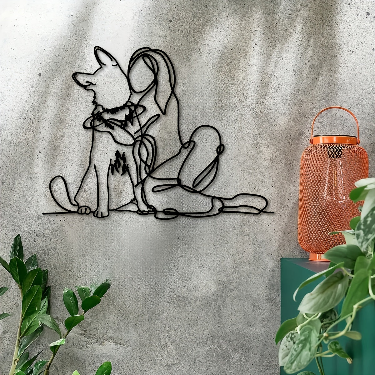 Modern Metal Art Deco 1pc Woman and Dog Line Wall Art - German Shepherd Pet Lovers Hanging Décor - Indoor Outdoor Garden Gift